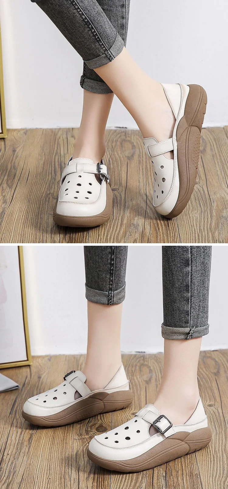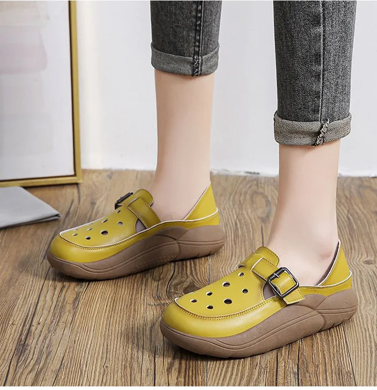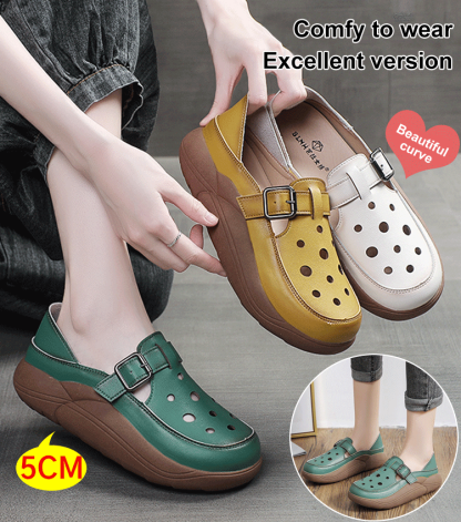 Leather Hollow Platform Sandals
